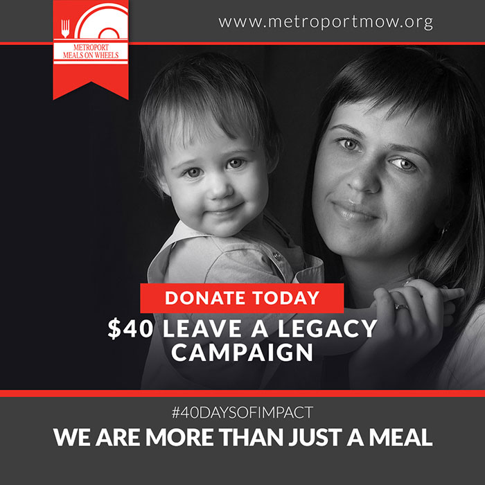 Additionally, Jason designed our most successful social media campaign, 40 Days of Impact, in celebration of our 40th anniversary. This campaign ran every day for 40 days with a different client story and correlating photo to show the impact our charity has had in our community. While this campaign was running, the covid government shutdown occurred. People began to experience what it felt like to be isolated and unable to secure household necessities. We ended up raising over $40,000 from this well-crafted and touching campaign that allowed us to keep our promise of “no missed meals” during covid.